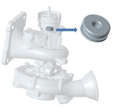The Vespel® guide bushings ensure the smooth, precise movement of the non-lubricated pneumatic wastegate actuator connecting rod. Vespel® SP bushings can provide a stable coefficient of friction over the life of the actuator and can reduce actuator hysteresis for accurate control of the turbocharger throughout the operating range. Thanks to the long-term thermal and chemical stability of these parts, these benefits can be maintained even in the high temperature and aggressive environmental conditions typically found near the exhaust stream of turbocharged engines.