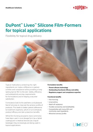 Liveo™ silicone-based technologies enable unique formulations, making your finished dosage forms easier to apply and more pleasant to use, thereby helping to increase patient compliance. Formulations with silicone material also offer functional film characteristics and long-lasting effects that are well-adapted for different skin diseases. In terms of patients’ compliance with treatment, the optimized efficiency of drug delivery and the behavior of silicone-containing formulations on skin can lead to better perceived efficacy and a more pleasant sensory feel, encouraging greater compliance.