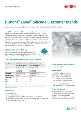 Our Liveo™ healthcare topical product range is composed of silicone-based materials that allow you to formulate innovative solutions in topical forms like creams, lotions, gels, ointments, sprays or sticks.